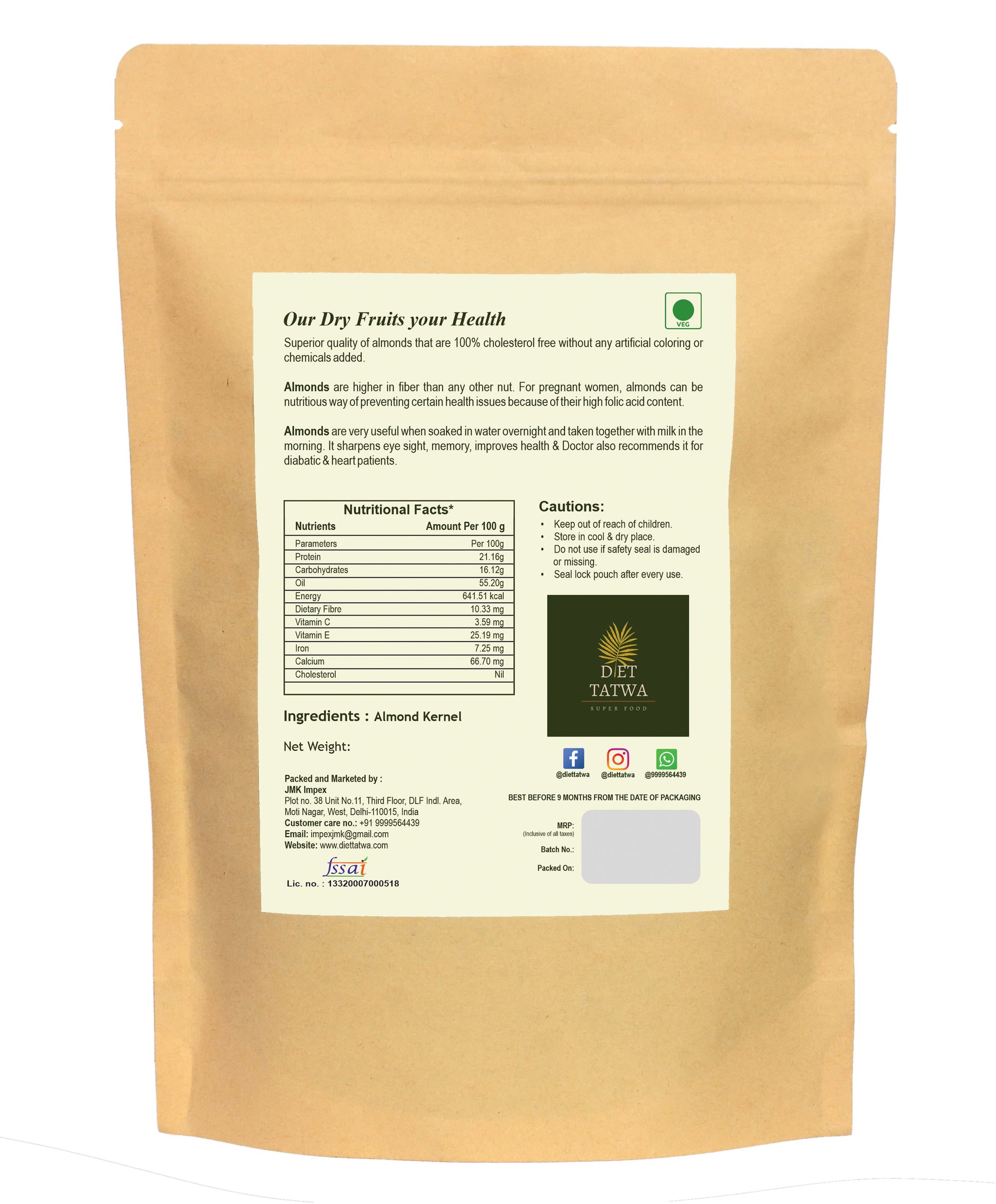 Diet Tatwa 100% Natural Premium Dried Almonds Pouch | Premium Badam Giri | High in Fiber & Boost Immunity | Real Nuts | Whole Natural Badam